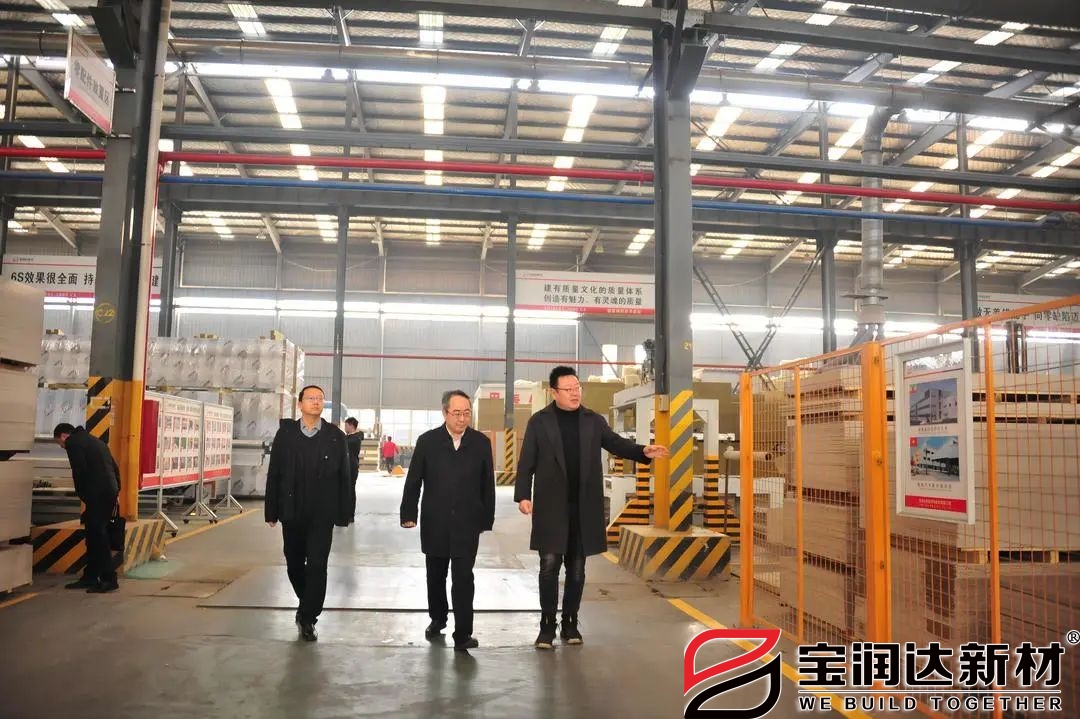 2月16日,懷寧縣委書記余學峰、懷寧縣政府副縣長譚憲鋒、懷寧縣縣委辦主任劉勁松、懷寧縣招商中心副主任關飛一行蒞臨寶潤達進行調研,寶潤達新材總經理朱正葉、總經理助理張曉光熱情接待。